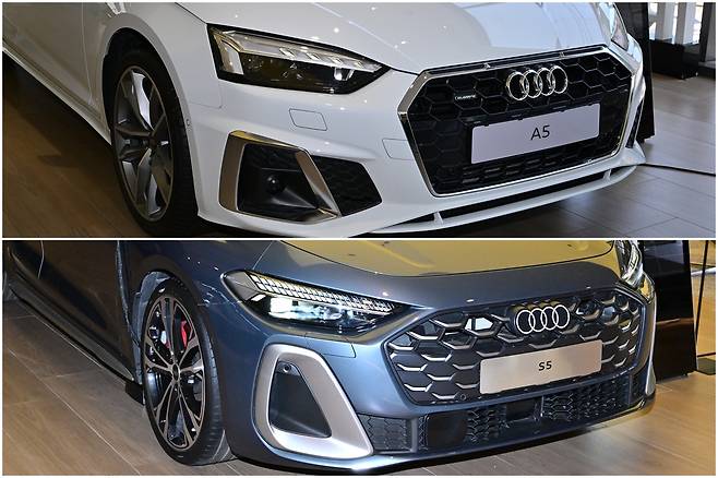 전시장 한편에는 구형 A5 소프트백 모델도 함께 전시되어 있었다. 그 덕분에 신형 모델이 구형 대비 어떤 변화가 이루어졌는지 한자리에서 확인할 수 있었다. 이번 포스트에서는 구형과 신형을 비교해 보는 시간을 가져보자. 구형은 A5, 신형은 S5로 다르지만 둘 다 S-라인 디자인 패키지를 기본으로 하기 때문에 실물 비교하는 데는 큰 문제가 없었다.