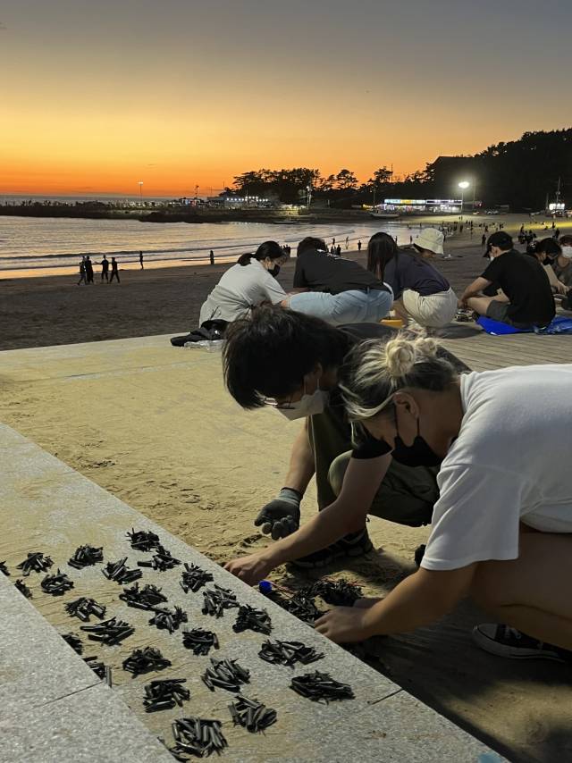 지난 9월 17일 오후, 인천 을왕리 해변에 시셰퍼드코리아 활동가님들과 시민 봉사자 32명이 모였어요. 모인 이유는 폭죽 탄피. 살면서 한 번도 관심을 기울여본 적이 없는데, 폭죽놀이를 하면 탄피가 떨어진대요. 플라스틱으로 만들어진 탄피가 이만큼이나요.