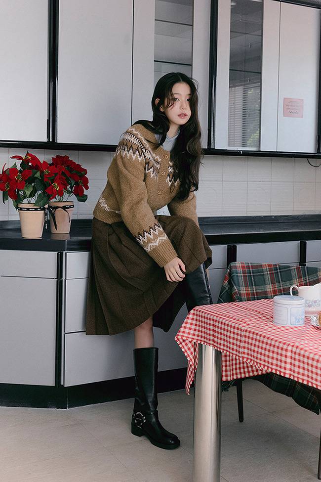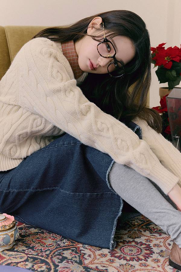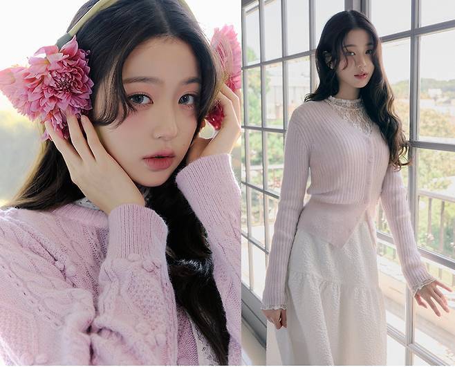 또한 장미 모티브의 니트와 부드러운 파스텔 톤의 카디건으로 여전히 순수하고 러블리한 소녀의 모습을 연출했습니다.