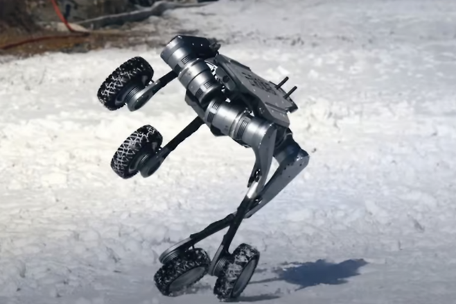 중국 로봇 전문기업인 딥로보틱스(Deep Robotics)가 개발한 로봇 링스(Lynx)가 또 한 번의 놀라운 움직임을 보여줬다. 4족보행 로봇의 네 발에 바퀴가 달렸음에도 자유로운 동작이 가능하다는 점에서 놀랍다는 평가가 나온다.