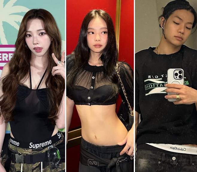 최근 속옷을 겉으로 드러낸 유명 연예인들의 노출 패션이 화제를 모으고 있다. 걸그룹 블랙핑크의 멤버 제니(본명 김제니)는 속옷이 보일 정도의 짧은 바지를 입고 공식석상에 자주 등장하고 있으며 걸그룹 에스파의 멤버 카리나(본명 유지민)는 하의를 의도적으로 내려 속옷 허리라인이 드러나도록 하는 이른바 ‘새깅(Sagging)’ 스타일로 이목을 끌었다. 남성 연예인들도 마찬가지다. 혼성그룹 올데이프로젝트 타잔(본명 이채원) 역시 카리나와 비슷한 스타일을 자주 선보이고 있다.