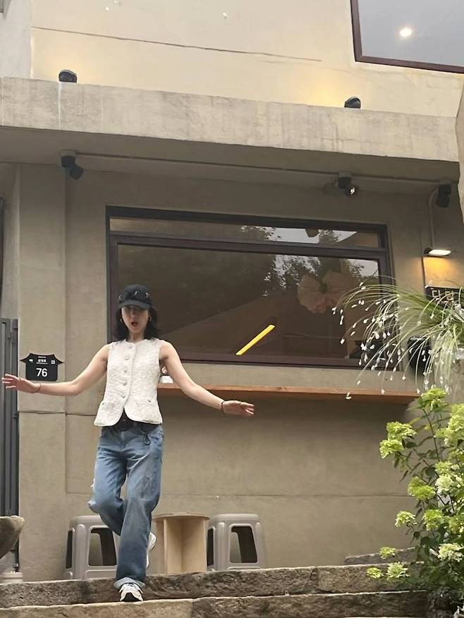 꾸민 듯 안 꾸민 듯 자연스러운 모습이지만, 군살 하나 없는 몸매와 또렷한 이목구비는 감출 수 없었다.