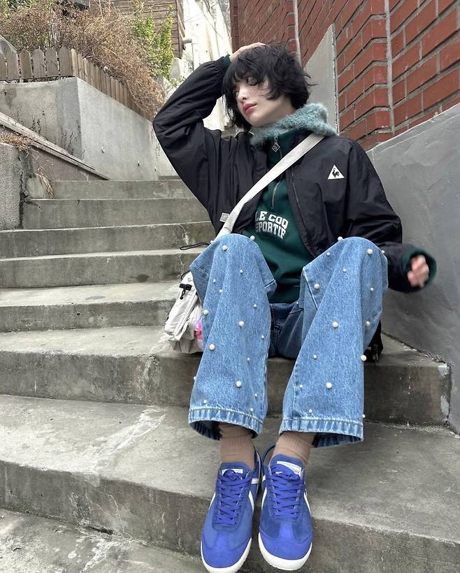 기본적인 조거 팬츠나 트레이닝 팬츠와 매치하면 편안한 애슬레저 룩이 완성되고, 나나처럼 개성 있는 디테일이 들어간 데님과 조합하면 캐주얼하면서도 감각적인 무드를 연출할 수 있어요.
