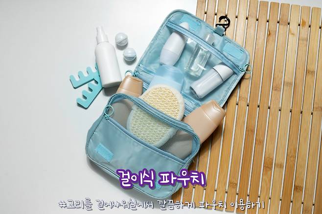 걸이식 파우치, 흔히 ‘워시백’이라고 불리는 이 아이템은 여행 중 욕실 공간을 깔끔하게 정리하는 데 필수적인 꿀템입니다. 여러 개의 수납칸이 있어 세면도구, 화장품, 스킨케어 제품 등을 한곳에 정리하기 좋죠. 특히, 고리에 걸 수 있어 호텔이나 숙소의 좁은 세면대에서도 편리하게 사용할 수 있다는 점이 장점입니다.