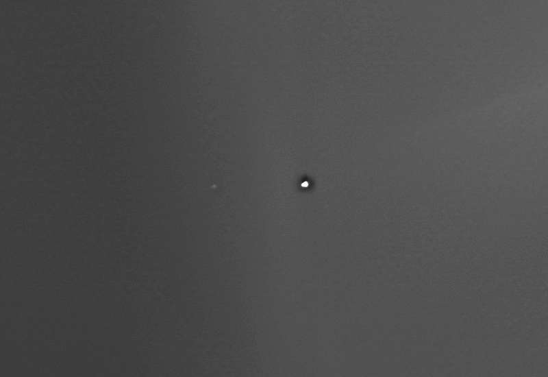 당시 '마스 익스프레스'는 미션 20주년을 기념해 지구와 달을 담아냈다. 사진을 찍을 때 탐사선에서 지구까지 거리는 2억7918만6624㎞에서 3억101만6265㎞였다. 평균값으로 따지면 이미지 1픽셀의 거리는 무려 2570㎞다.