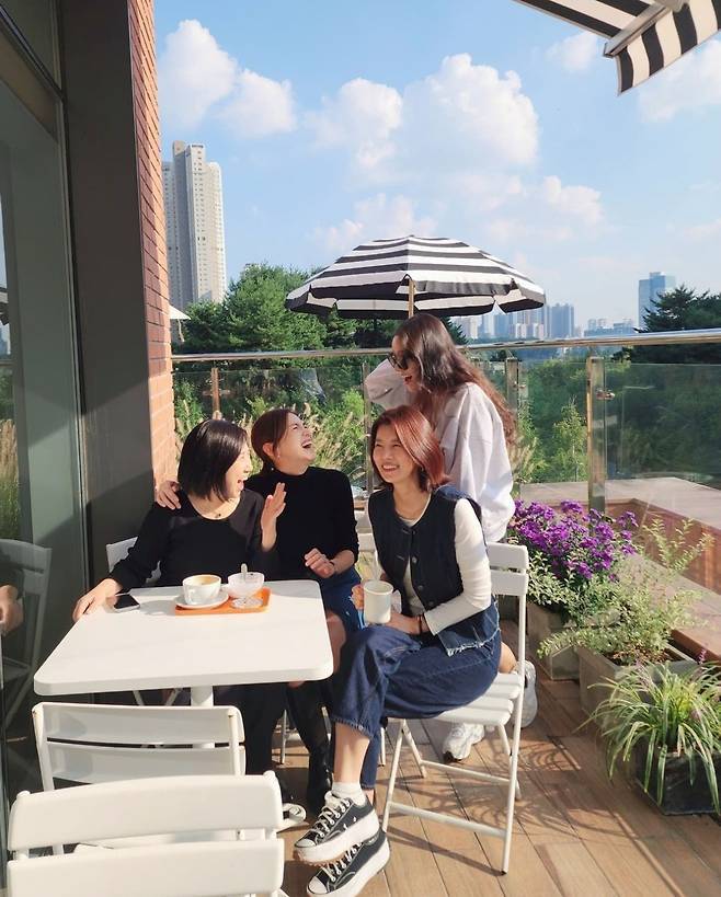 유선은 화사한 야외 테라스에서 여유로운 시간을 보내며 감각적인 캐주얼 룩을 완벽하게 소화해 자연스러운 매력과 세련된 분위기를 자아냈습니다.