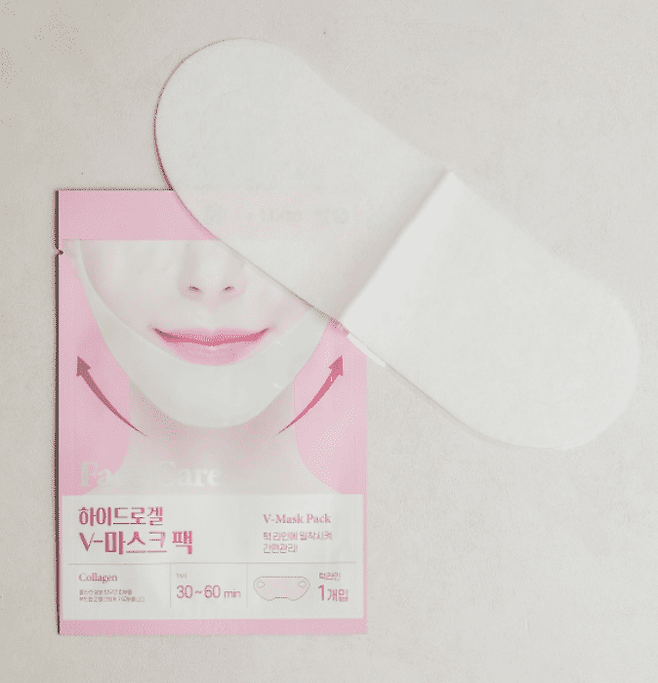 리프팅 팩을 찾고 있다면 '팩미인 하이드로겔 브이 마스크팩'을 사용해보자. 턱 전용 마스크 팩으로 귀에 거는 부분이 있어 턱에 부착 한 뒤 간단하게 귀에 끼워주면 끝! 쫀쫀하고 탄탄한 재질의 팩에 콜라겐 성분과 고농축 에센스가 함유되어 있어 턱 라인을 집중적으로 관리 할 수 있게 도와준다. (1000원)
