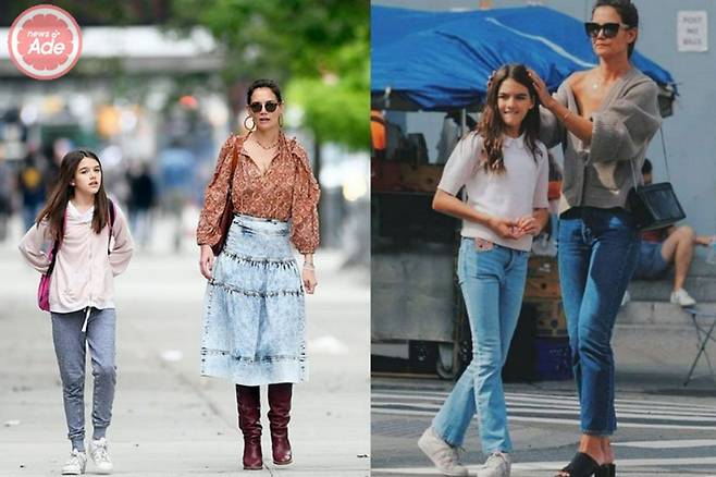 수리는 특히 케이티 홈즈와 찍힌 사진이 많았는데요. 모녀가 청바지 입은 사진이 퍼져, 모델핏이라며 화제가 되기도 했죠.