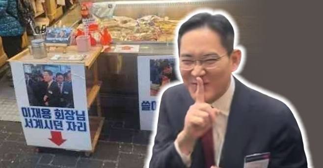 어묵집을 방문한 누리꾼은 "매장 안과 밖에 '이재용 회장님이 서 계시던 자리', '쓸어 담던 자리' 등을 표시해 놨더라"라며 사진도 함께 공개했다. 게재된 사진을 참고하면 이 회장이 어묵을 먹었던 장소를 화살표로 나타내어, 단번에 알아볼 수 있게끔 꾸며놓았다.