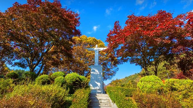 깊은 신앙의 역사가 살아 숨 쉬는 이곳은 단풍이 절정을 이루는 10월에서 11월 사이, 고요한 자연과 종교적 울림이 어우러져 특별한 감동을 전합니다.