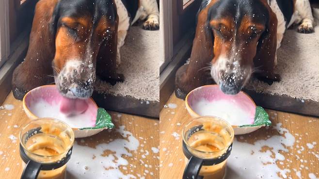 한 바셋 하운드의 ‘우유 마시는 법’이 전 세계 누리꾼을 웃게 만들었다. 틱톡 계정 에 올라온 영상 속 강아지는 침대에 누운 채 앞발 사이에 놓인 우유 그릇을 바라본다. 이윽고 혀를 내밀어 한 모금 맛보는 순간, 예상치 못한 사태가 벌어진다.