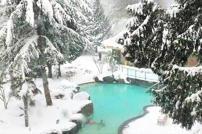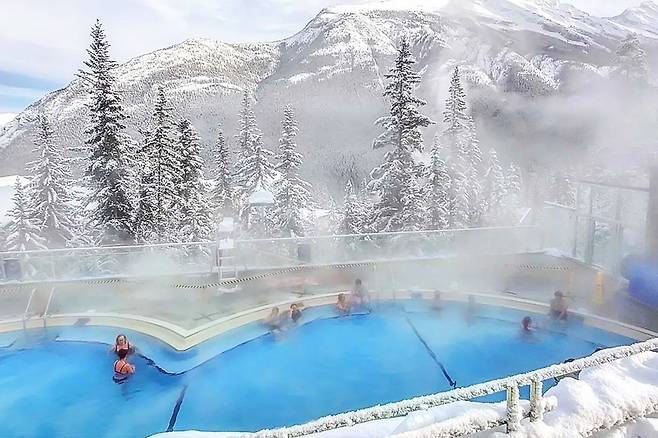 겨울이 되면 캐나다 로키산맥의 설산을 바라보며 온천을 할 수 있는 곳이 인기를 끌고 있습니다.