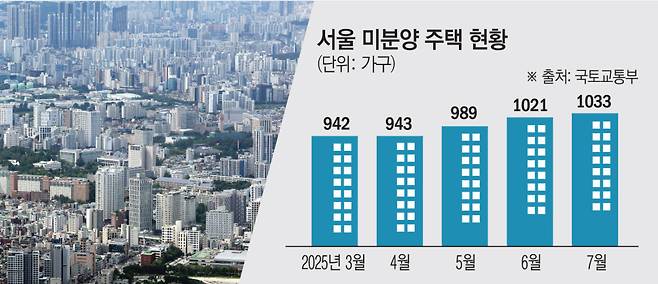 3일 국토교통부와 서울시에 따르면 서울의 미분양 주택은 4개월 연속 증가하면서 7월 말 기준 1033가구를 기록했다. 올해 1월 1352가구에서 3월 942가구까지 줄었다가 이후 계속 늘어나고 있는 것이다.