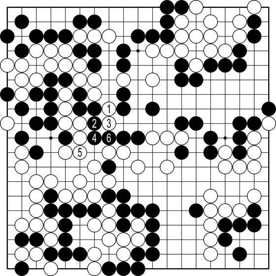 ◆참고도=백1로 몰고 나와도 흑4로 단수가 되어 백이 안 된다. 딩하오는 신진서를 꺾고 4강에 올랐다. 딩하오는 중국 랭킹 1~6위를 오가는 강자이고 신진서와 2000년생 동갑이다.
