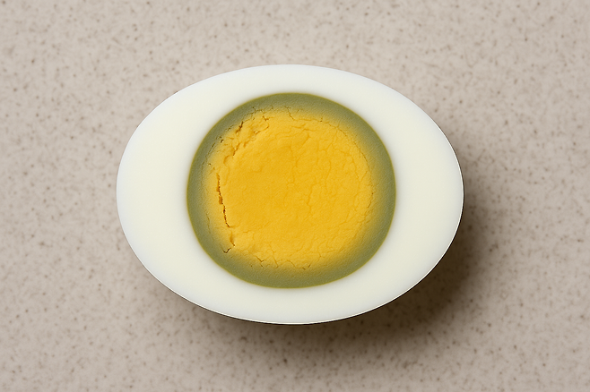 이건 단순히 오래 삶아서 그런 게 아니라, 계란 안에서 일어나는 화학반응 때문이에요.