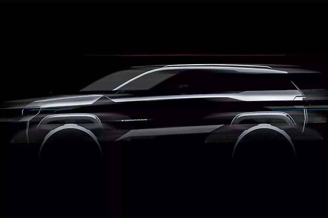 지프는 최근 컴패스의 티저 이미지를 공개하며 새 모델의 실루엣을 살짝 드러냈다. 전면부에는 브랜드 상징인 7바 그릴과 직사각형 헤드램프가 이어진다.