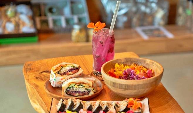 이곳의 대표 메뉴는 눈으로 먼저 즐기는 꽃비빔밥인데요. 색색의 꽃잎이 어우러져 마치 접시 위 정원을 보는 듯한 느낌을 줍니다. 먹을 수 있는 꽃을 활용한 샌드위치, 김밥도 있어 한 끼 식사로도 손색이 없죠. 함께 곁들여지는 꽃차는 계절에 따라 다른 향과 맛을 전하며 몸을 따뜻하게 풀어줍니다.
