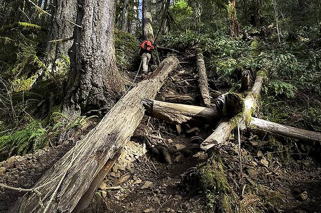 얼마나 비가 내리는지에 따라 이 트레일의 바위는 위험할 정도로 미끄러울 수 있습니다.