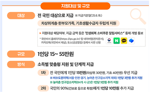 민생회복 소비쿠폰, 최대 55만원 1차 지급 곧 시작