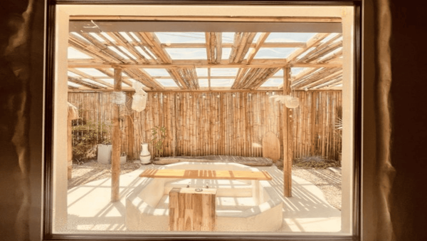 숙소는 원룸형 독채로 침대 두 개가 마련되어 있어 연인뿐 아니라 가족 단위 투숙객에게도 적합한 구조인데요. 실내에는 따뜻한 욕조와 입욕제가 준비되어 있고, 야외 자쿠지는 하루 한 번 무료로 이용 가능합니다. 다만 온수를 채우는 데 약 2시간이 소요되므로, 입실 즉시 물을 받기 시작하는 것이 좋습니다.