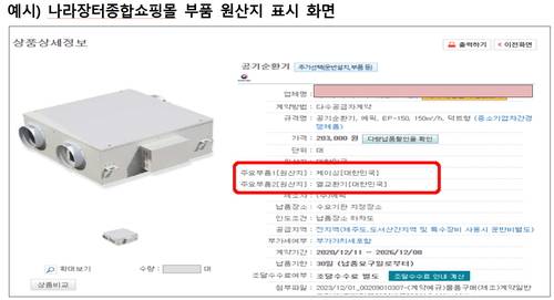 조달청, 나라장터 종합쇼핑몰 제품·부품 원산지 표시 확대