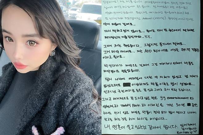 앞서 박봄은 이날 "여러분들에게 진실을 전해드리고 싶어 글을 쓴다"며 자신이 ADHD(주의력 결핍증)이라고 전했다. 그러면서 "산다라박이 마약으로 걸린 것을 커버하기 위해 박봄을 마약쟁이로 만들었다"고 사실 확인이 되지 않은 주장을 이어갔다.