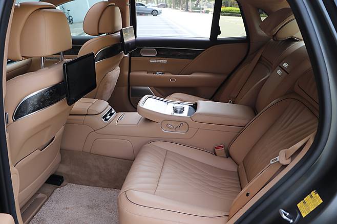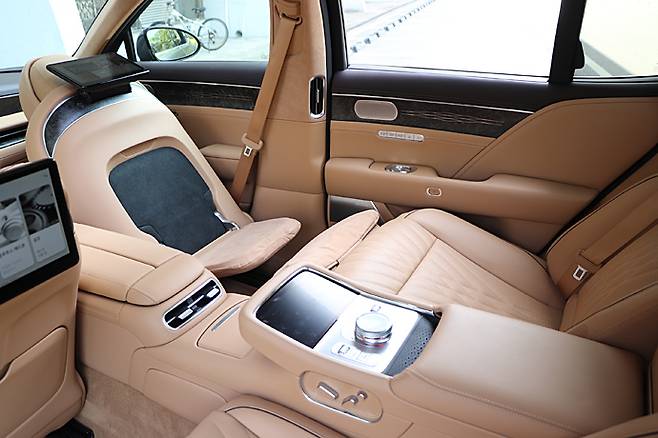 무엇보다 리어 시트의 구성이 좋다. 쇼파드리븐으로 사용되는 대형 세단은 그 비싼 가격에도 불구하고 정작 그것을 즐기는 것은 운전사였다. 그런데 G90은 리어 시트 가운데 컨트롤 패널의 버튼 조작으로 앞 시트를 앞으로 젖히고 시트백 부분의 발판을 내리며 리어 시트를 눕힐 수 있다. 오늘날 비행기 비즈니스 시트만큼은 아니지만 정말로 휴식을 취할 수 있다고 느끼게 하기에 충분하다.