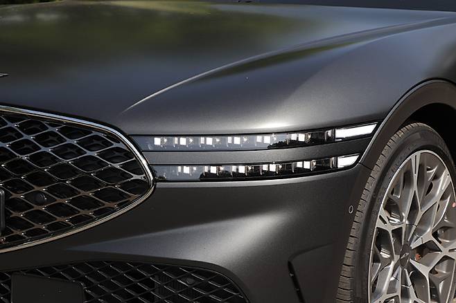 스타일링 디자인에서 느끼는 것은 그사이 제네시스 브랜드의 아이콘이 자리 잡았다는 것이다. 5각형 라디에이터 그릴은 각 모델에서 약간씩 차이가 있다. 두 줄도 모델에 따라 그래픽이 약간 다르다. 그래도 이제는 확실히 브랜드의 정체성을 표현하는 역할을 수행하고 있다.