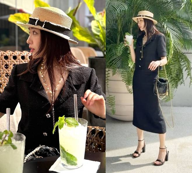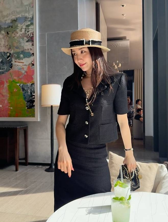 공개한 사진에서 박하선은 페도라햇에 블랙 트위드 롱 스커트와 재킷 셋업 슈트룩으로 목동 여신다운 시크하면서도 귀여운 스타일로 시선을 사로잡았다.