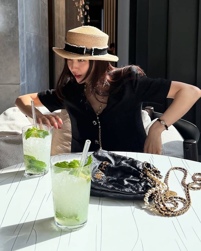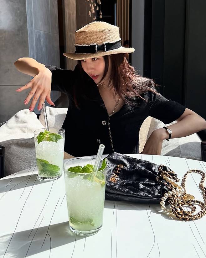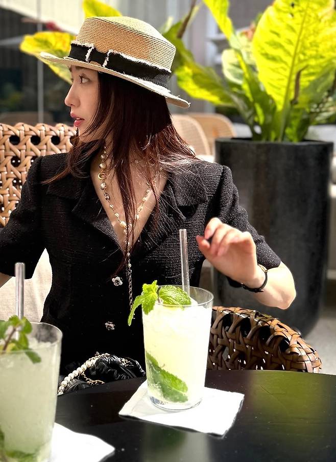 박하선은 10일 자신의 채널에 “중요한 오전 일정 끝! 너무 맛있는 Mojito, 이제 수영장 가자. I love Thailand”라는 글과 함께 태국 출장 사진을 게재했다.