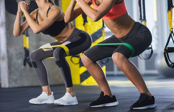 다리를 어깨너비보다 넓게 벌려 준비 자세를 취합니다. 다리 사이에는 밴드를 착용합니다. 스쿼트 동작을 진행하며 엉덩이를 뒤로 내리고 허벅지가 바닥과 평행이 되도록 합니다. 일어서는 동시에 오른쪽 다리를 뒤로 뻗어줍니다. 다시 스쿼트 자세로 돌아와 이번에는 왼쪽 다리를 뒤로 뻗습니다.