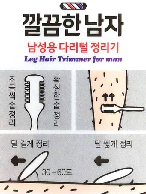 짧아지는 바지에 다리털이 신경쓰인다면? '남성용 다리털 정리기'를 사용해보세요. 다리의 털을 모두 밀어버리는 면도기가 아닌 털의 숱과 길이를 조절해주는 다리털 전용 도구인데요. 물기 없는 상태에서 털을 밑에서 위로 빗어주면 털이 깔끔하게 정리됩니다.