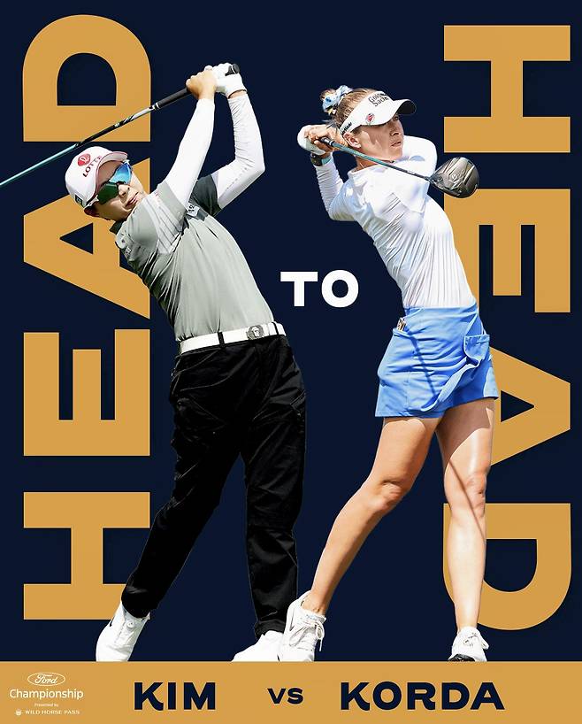 29일(한국시간) 미국 애리조나주 피닉스의 휠윈드 골프클럽에서 열린 LPGA 투어 포드 챔피언십 3라운드 직후, 공동취재구역에서는 영화 같은 장면이 연출됐다. 인터뷰를 준비하던 김효주 뒤로 '세계 랭킹 1위' 넬리 코다가 깜짝 등장해 두 손으로 하트를 그려 보인 것,