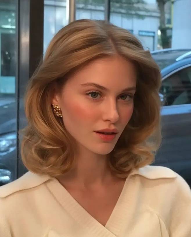 턱선에 딱 붙는 볼륨 없는 단발은 생각보다 얼굴을 넓어 보이게 만들 수 있습니다.