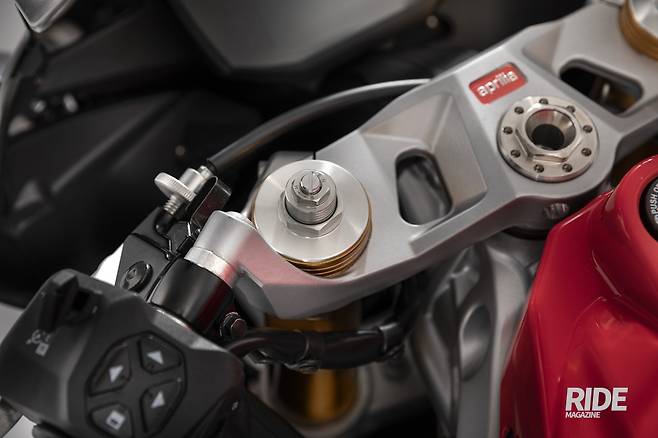 아프릴리아 최신 모델인 만큼 주행을 보조하는 전자장비 역시 다양하게 투입된다. 2007년 처음 도입한 라이드-바이-와이어 스로틀 컨트롤은 물론이고, 트랙션 컨트롤, 윌리 컨트롤, 크루즈 컨트롤, 퀵 시프트, 엔진 브레이크 제어, 엔진 맵핑 제어 등의 기능을 갖추고 있다. 또한 5종의 라이딩 모드가 적용되어 라이더가 필요에 맞춰 주행모드를 선택하면 이러한 주행 관련 보조 기능들을 일괄적으로 변경할 수 있다.