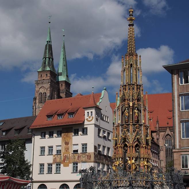 이름처럼 아름다운 분수. 쇠너브루넨은 뉘른베르크 중앙광장에서 가장 눈에 띄는 랜드마크 중 하나인데요. 14세기에 세워진 이 분수는 당시 도시의 물 공급을 위한 중요한 역할을 했다고 전해집니다.