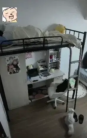 졸업 후, 고양이가 집에 적응하지 못하자 주인은 집을 기숙사처럼 꾸며주어, 다시 예전처럼 뛰어놀 수 있도록 배려했습니다.