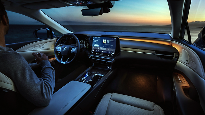 렉서스는 이번 RX에 무선 스마트폰 충전기를 전 트림 기본 사양으로 적용했습니다. 5,000만 원이 넘는 럭셔리 SUV임에도 충전기를 옵션으로 별도 구매해야 했던 불편이 개선된 것입니다. 이외에도 전자식 조절 스티어링 휠, 앰비언트 라이트, 12스피커 오디오 시스템이 제공되며, 12.3인치 디지털 계기판과 14인치 대형 인포테인먼트 디스플레이가 탑재돼 운전 편의성이 향상됐습니다.