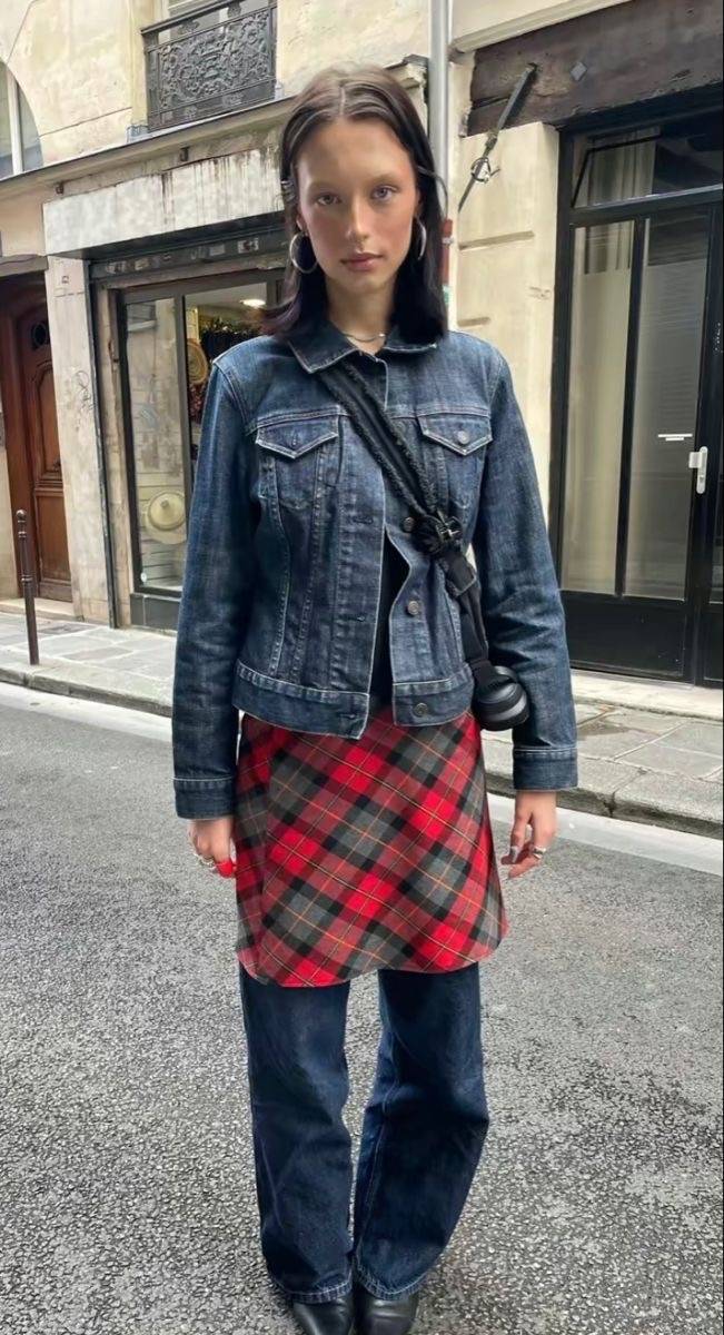 요즘 길에서 많이 볼 수 있는 청바지+원피스 조합이예요!
