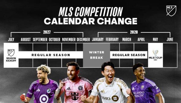 14일(한국시간) MLS 사무국은 공식 홈페이지를 통해 "리그 일정을 세계 최고의 축구 리그들과 맞추는 방향으로 대회 일정을 변경한다. 2027년 여름부터 MLS는 추춘제 방식의 시즌 포맷을 채택하며, 리그 역사상 가장 중요한 변화 중 하나로 평가"라고 발표했다.