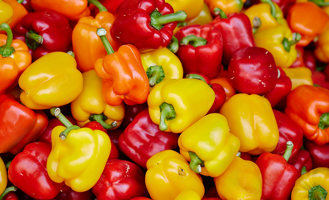 알록달록한 피망은 비타민 C의 보고로 불리죠. 이 비타민 C는 열에 약해서 익히면 쉽게 파괴돼요. 그래서 피망은 생으로 먹을 때 영양 흡수율이 가장 높습니다. 샐러드에 넣거나 스틱으로 썰어 간식처럼 먹으면 비타민 C를 최대한 챙길 수 있죠. 색깔도 예쁘고 아삭아삭한 식감까지 더해져 입맛도 살려줍니다.