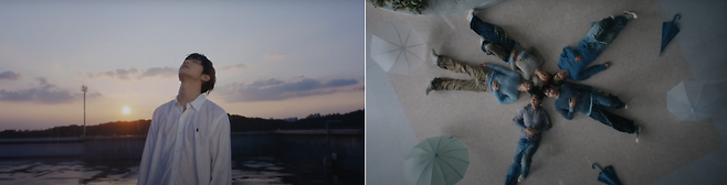 더 이상 물방울이 아닌 비!🌧️ 우산이 필요할 정도로 비가 쏟아 내리지만 그저 커져 버린 사랑을 온전히 느끼는 다섯 명의 소년의 모습을 볼 수 있습니다. 서로 함께하며 편안히 ‘마법 같은 순간’을 즐기는 멤버들을 보니 같이 안심이 되는 느낌이네요.