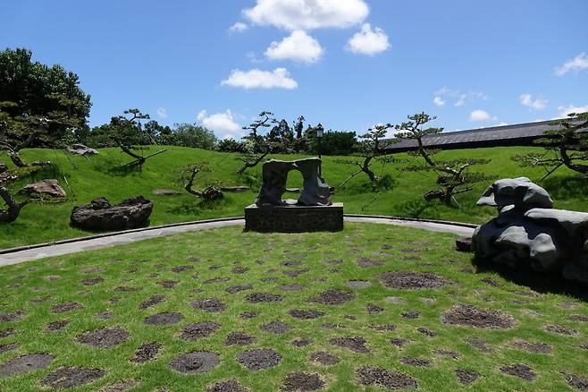 정성 가득한 정원수와 분재, 그리고 독특한 괴석과 수석이 곳곳에 장식되어 있어, 인스타 사진이나 짧은 영상을 찍기에도 완벽한 배경을 제공합니다. 정원은 돌담으로 둘러싸여 있어 마치 성처럼 보이는데, 이는 제주도의 거센 바람으로부터 나무들을 보호하기 위한 노력의 결과라고 할 수 있습니다.