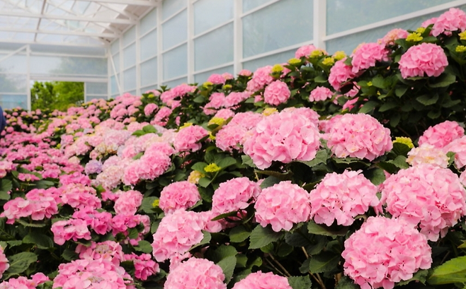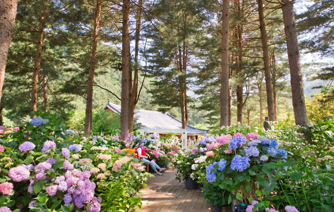 포천 평강랜드: 테마가든 곳곳에 수국이 만개. 6월부터 가을까지 피어 장기간 수국 관람이 가능한 곳입니다.