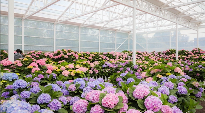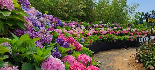 충남 공주 유구 색동수국정원: 형형색색의 수국이 펼쳐진 넓은 정원. 지역 축제와 함께 감상 가능.
