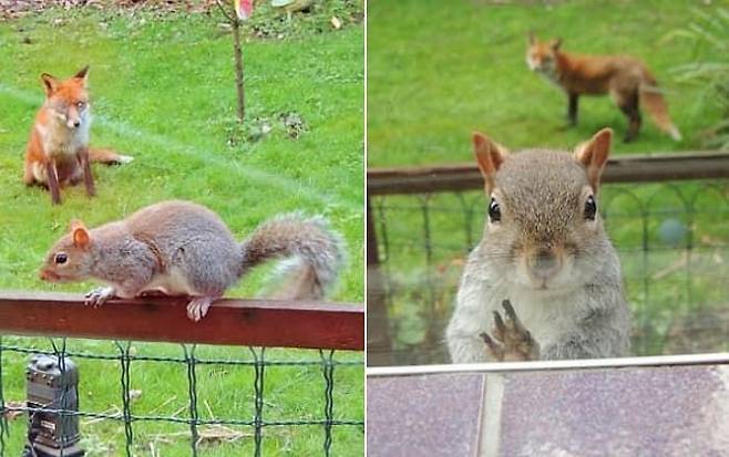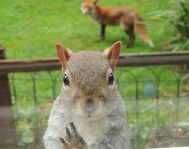 여우가 무서웠는지 다람쥐는 간절한 눈빛으로 창문을 두드렸습니다. 반면 정작 여우는 다람쥐에게 관심 없는 보였다고 합니다.