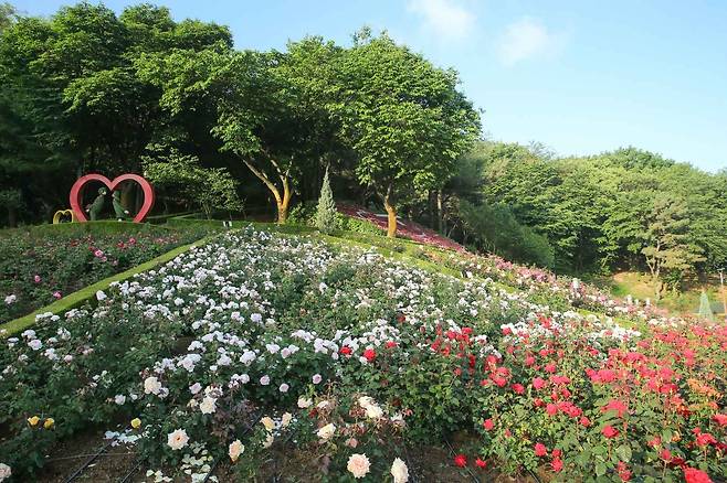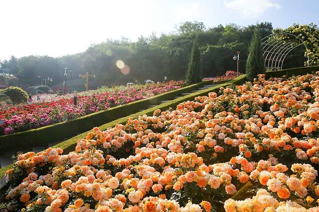 장미원에는 클래식한 빨간 장미부터 연분홍, 노란빛, 오렌지색, 흰색 장미까지 다양한 색과 향기의 장미들이 구역별로 식재되어 있어 산책하며 즐기기에 좋다. 장미 덩굴이 어우러진 아치, 포토존, 산책길이 잘 조성되어 있어 가족 단위 방문객이나 연인들의 데이트 장소로도 인기다.