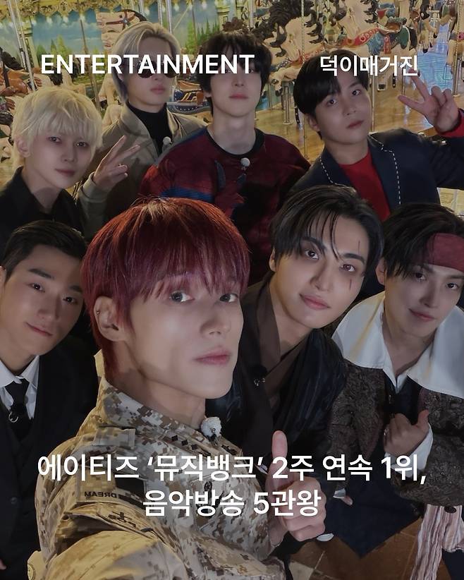 지난 20일 '뮤직뱅크' 공식 홈페이지를 통해 발표된 2월 3주 'K-차트'에 따르면, 에이티즈는 미니 13집 '골든 아워 : 파트 4(GOLDEN HOUR : Part.4)' 타이틀곡 '아드레날린(Adrenaline)'으로 2주 연속 1위를 차지했습니다. 이들은 앞서 MBC M '쇼! 챔피언', KBS 2TV '뮤직뱅크', MBC '쇼! 음악중심', SBS '인기가요'에서 1위를 기록한 것에 이어 공식 활동 종료 후에도 음악방송 트로피를 추가하며 뜨거운 인기와 화제성을 입증했습니다.