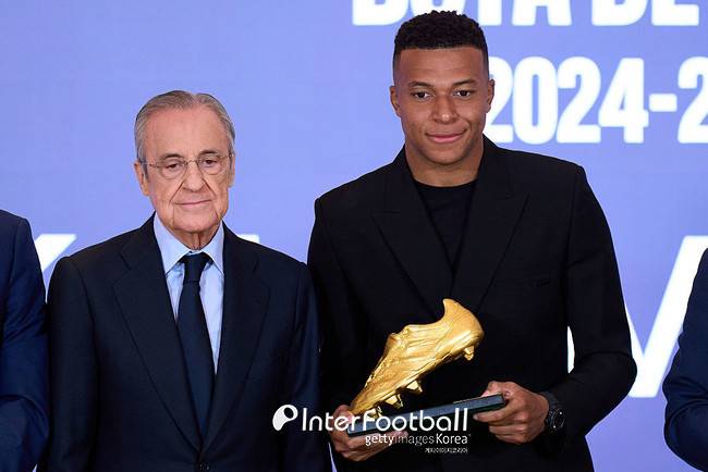 음바페가 커리어 최초로 수상을 했다. 파리 생제르맹(PSG)을 떠나 레알로 온 음바페는 2024-25시즌 스페인 라리가 34경기에서 31골을 터트렸다. 초반에는 아쉬웠지만 점차 득점 행진을 이어가더니 30골을 돌파했다. 로베르트 레반도프스키를 제치고 라리가 득점왕에 올랐다. 레알은 지난 시즌 리그에서 78득점을 넣었다. 거의 절반 정도를 음바페가 책임졌다.