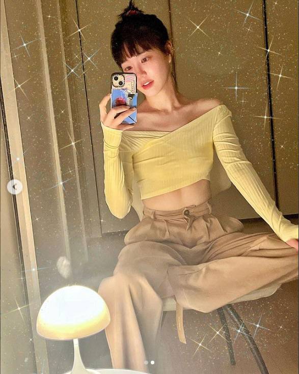 이유비는 오픈숄더 의상을 입고 셀피를 남기고 있는 모습. 이때 앙상하게 드러난 어깨와 납작한 배가 공개돼 시선을 모았다.
